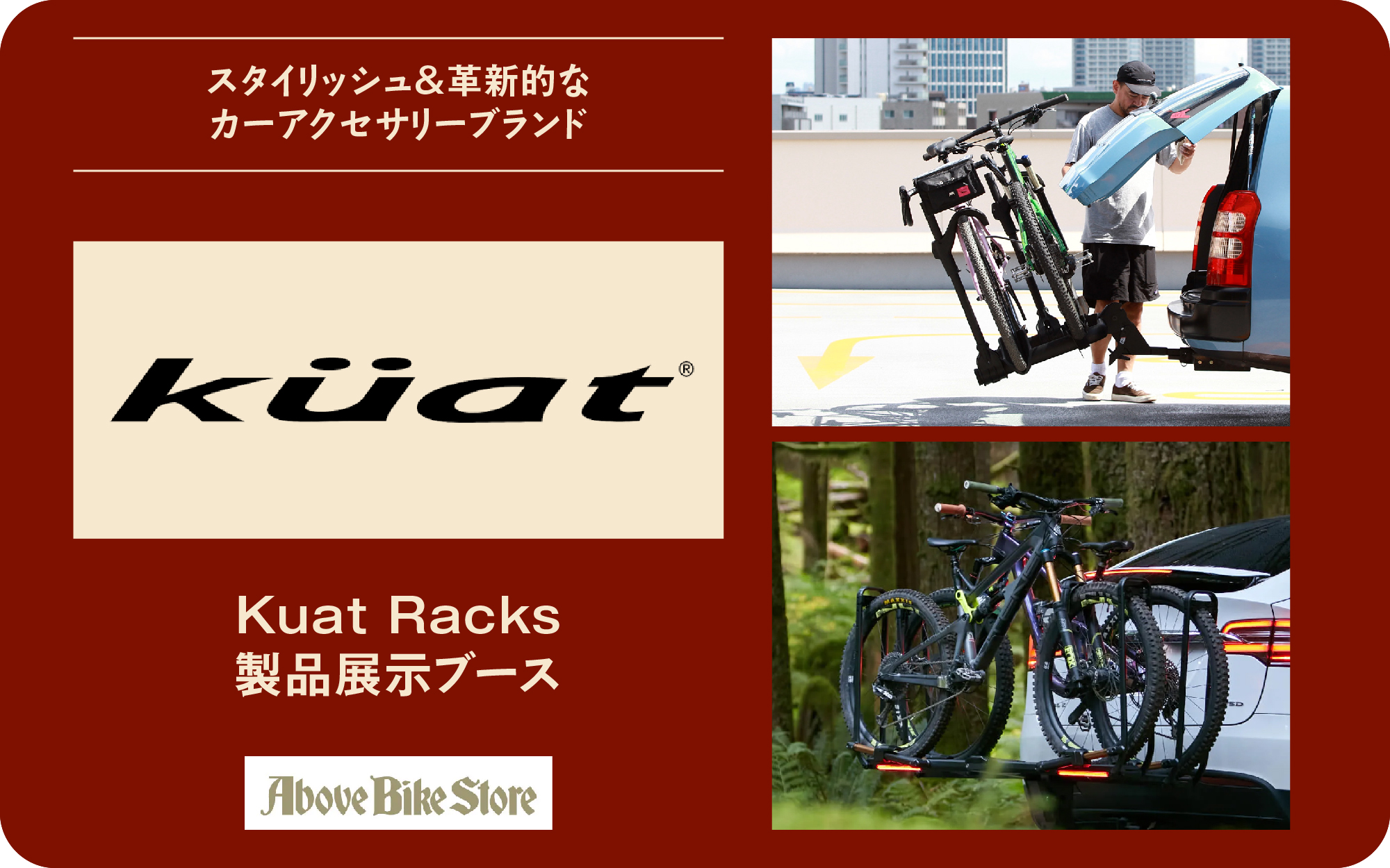 当日はKuat Racks 正規輸入総代理店のABOVE BIKE STORE プロデュースの実車展示を行います!こちらもお見逃しなく!
